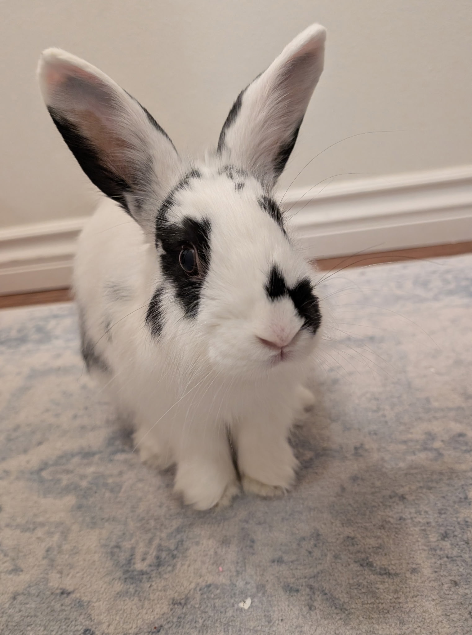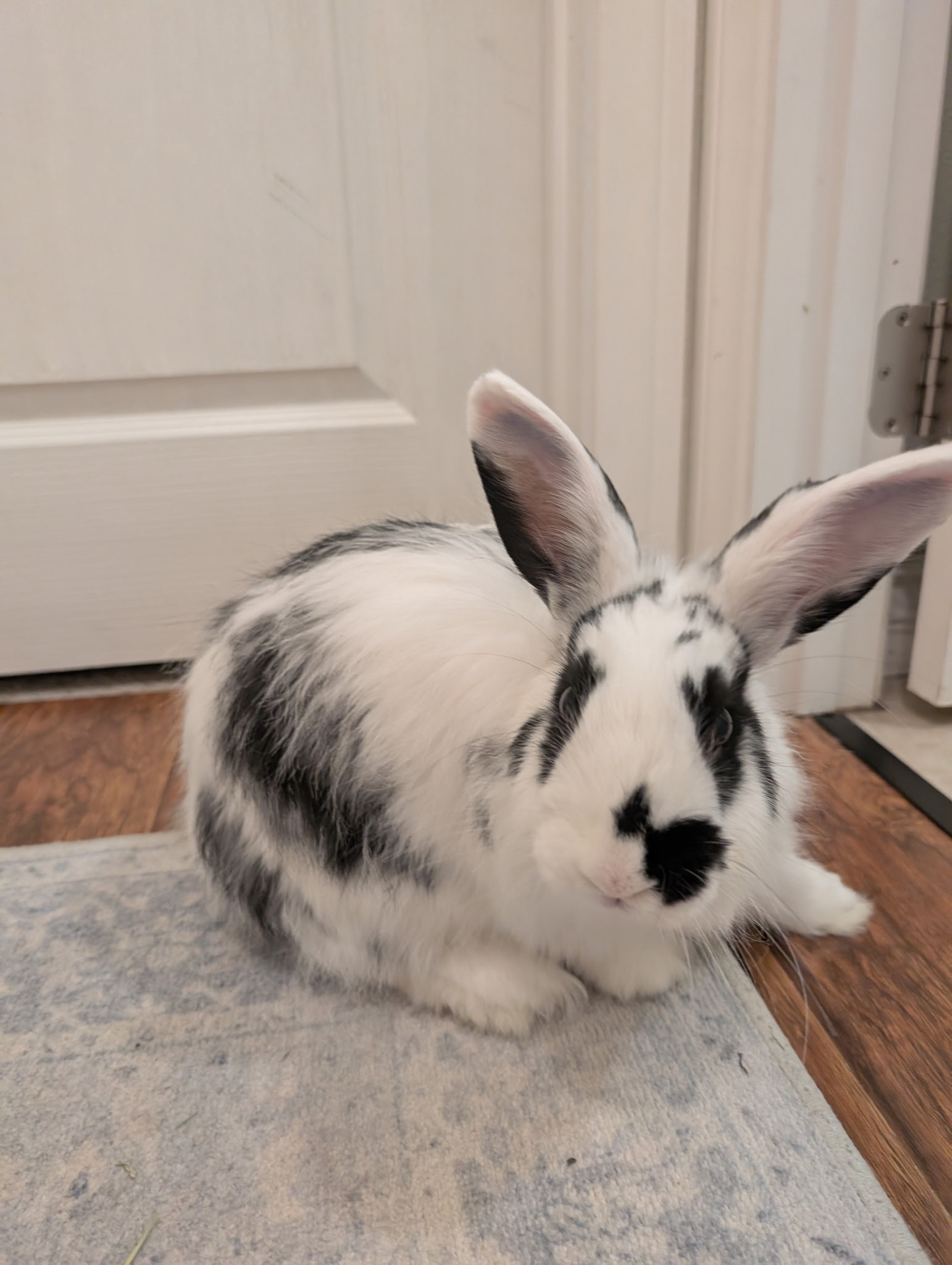 Angora mix Echo is being returned through no fault of his own--the girlbun decided she didn't like him. He's a sweet fellow in the 2-6 year old range (they don't tell us their exact ages!) and would likely bond with an easygoing rabbit.